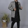 blazer for men lowest price This men’s ethnic printed blazer is designed to deliver a perfect balance of tradition and modern style. The charcoal grey base is enhanced with subtle geometric patterns that give the blazer a refined and premium appearance. blazer for men lowest price The design is elegant, not flashy, making it suitable for men who prefer classy ethnic wear with understated detailing. Whether worn during the day or evening, this blazer maintains a rich and graceful look.