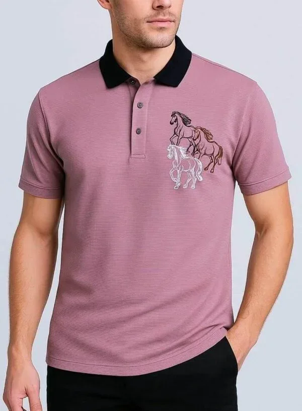 What truly sets this polo sport t shirt apart is its elegant horse print on the chest. The detailed and artistic print adds a bold yet classy statement, symbolizing strength, confidence, and style. This unique design element enhances the overall appearance of the polo t-shirt without making it look too loud or flashy.