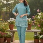 - Designed for all-day comfort, this women’s kurta pant set allows easy movement and a relaxed feel. The kurta is paired with a well-fitted pant that completes the look with a clean and polished finish. This balanced design makes it ideal for long hours of wear, whether at the office or during social gatherings. Breathable Fabric for All-Day Comfort: Crafted from soft and breathable fabric, this kurta pant set keeps you feeling fresh even during warm weather. The lightweight material feels gentle on the skin and helps regulate body temperature, trendy kurta set for women making it suitable for all seasons. It is a great alternative to heavy ethnic outfits when you want comfort without compromising on style comfortable kurta pant set.Future Product Perfect for Multiple Occasions: This trendy kurta set for women